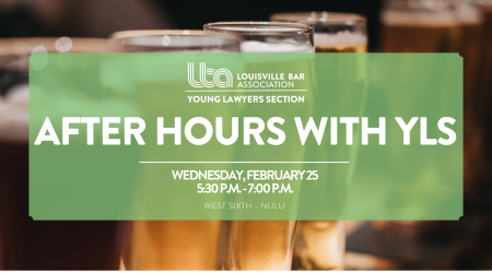 Join the Young Lawyers Section for a midweek social hour on Wednesday, February 25, from 5:30 p.m. to 7:00 p.m. at West Sixth - Nulu. Step away from the office, catch up with colleagues, meet new attorneys and grow your circle in the Louisville legal community.
