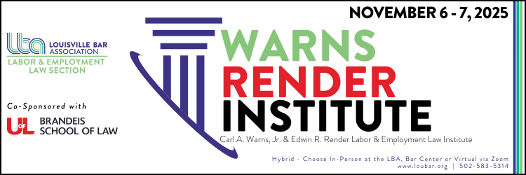 The Carl A. Warns, Jr. and Edwin R. Render Labor and Employment Law Institute sponsored by the LBA Labor and Employment Law Section and the UL Brandeis School of Law, provides high-quality continuing legal education to local and regional labor and employment law attorneys, human resource professionals, union representatives and other workplace experts.