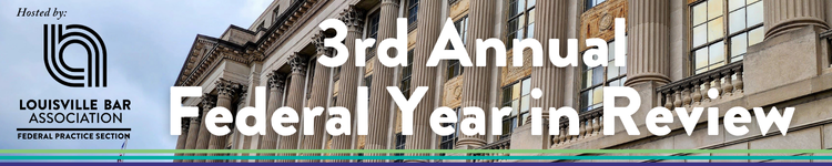 The Third Annual Year in Review CLE, sponsored by the Federal Practice Section of the LBA, will be on December 10th at 2 PM (EST) in the courthouse of the US District Court for the Western District of Kentucky.